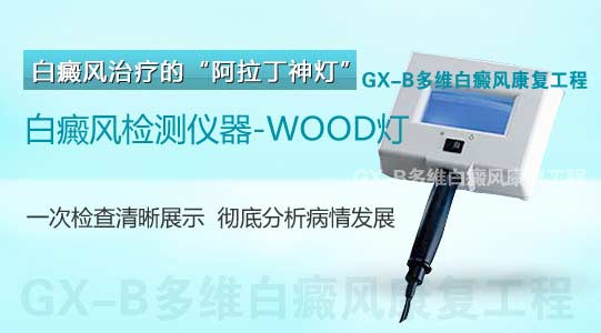 WOOD灯的检测原理为:WOOD灯是用通过含氧化镍之滤玻片而获得的320纳米~400纳米长波紫外线,对某些皮肤病做检查的方法,将有助于这些疾病的诊断和治疗。此波有助于色素性皮肤病(包括白癜风)的诊断。临床上肉眼有时难以发现正常皮肤特别是白皙皮肤上的浅色斑。用WOOD灯可轻松检测白癜风,并可与其他白斑相鉴别,尤其当白斑中开始出现毛囊复色时,复色初期在自然光线下表现并不明显,但可以借助WOOD灯来观察而得以确认。