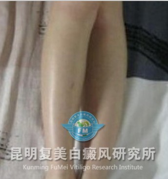 ▲病史:高中的时候一直穿长裤,开始泛白并没有在意,一个冬天过去发现白的更厉害了而且好像面积变大了许多,4年来一直以学习为重没有理睬,知道去年才去诊断为白癜风。今年来我院接受正规治疗。